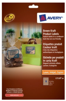 PAQUETE 20 HOJAS ETIQUETAS PARA PRODUCTOS EN PAPEL KRAFT, EFECTO CARTON-IMPRESORAS LASER/INYECCION DE TINTA-RECTANGULARES-62X42 MM AVERY L7110-20