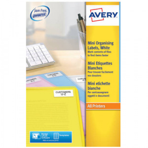 PAQUETE 15 HOJAS MINI ETIQUETAS BLANCAS IMPRESORAS LASER-46X11,1 MM AVERY L7656-15