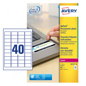 PAQUETE 20 HOJAS ETIQUETAS BLANCAS NO DESPEGABLES-IMPRESORAS LASER-45,7X25,4 MM AVERY L6145-20